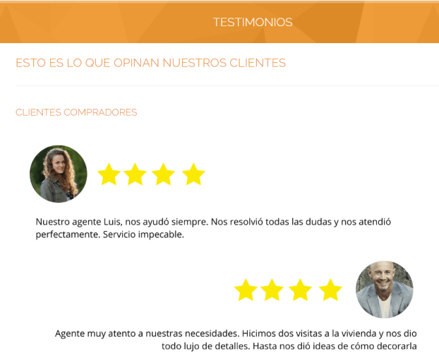 Esta sección es importante porque siempre que alguien va a contratar o usar unos servicios investigamos las opiniones que tiene en Internet. Si ya las tienes puestas en tu web, es tiempo que ahorrará la persona y le ayudarás a generar más confianza y transparencia.