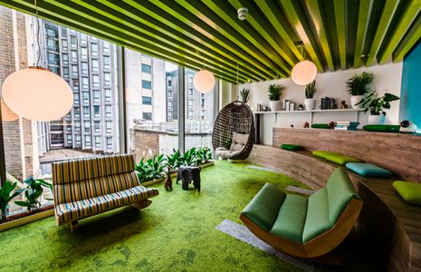 - Zonas de relax y descanso. Pasas muchas horas trabajando y descansar a veces no está mal. Tener un espacio donde puedes tomar un café tranquilamente, o leer las últimas novedades del sector inmobiliario es importante. Puedes poner una cafetera y una nevera. Tener una zona de descanso hace ver a tu equipo que también te preocupas por ello. También la puedes usar para tomar un café con un potencial cliente por ejemplo.