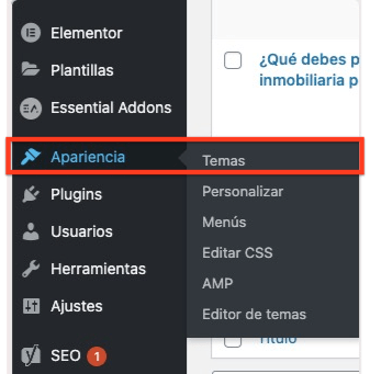Accede al panel de configuración de tu WordPress. Desde el menú de la izquierda busca: apariencia y pincha en temas.