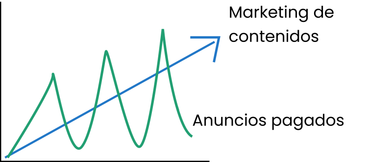 Con los anuncios pagados obtienes picos de tráfico. En el momento que dejes de pagar por ellos dejarás de generar tráfico. Además, son anuncios que van directos a convertir, saltándose todas las etapas del embudo.