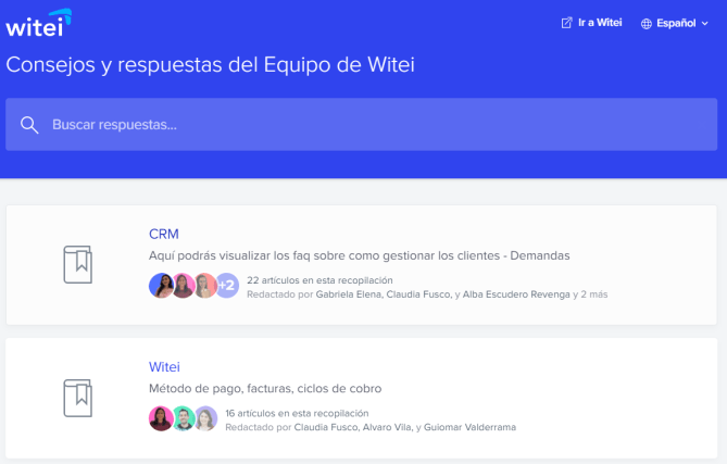 Por ejemplo en Witei tenemos el “manual de uso de Witei” en el que explicamos de forma detallada cómo usar cada una de las herramientas. Así acompañamos al cliente y le ayudamos a que saque siempre el máximo partido y beneficio de las herramientas que le damos.
