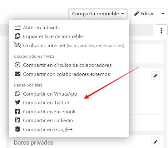 Además desde el software inmobiliario podrás publicar directamente en diferentes redes sociales: